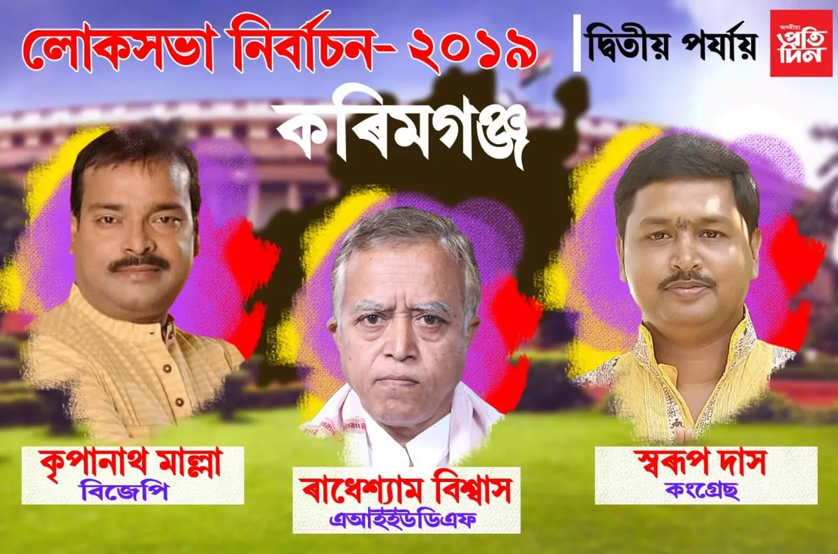 - কৰিমগঞ্জত তিনিকোণীয়া প্ৰতিদ্বন্দ্বিতা হ'ব কংগ্ৰেছ, এ আই ইউ ডি এফ আৰু বিজেপিৰ মাজত।