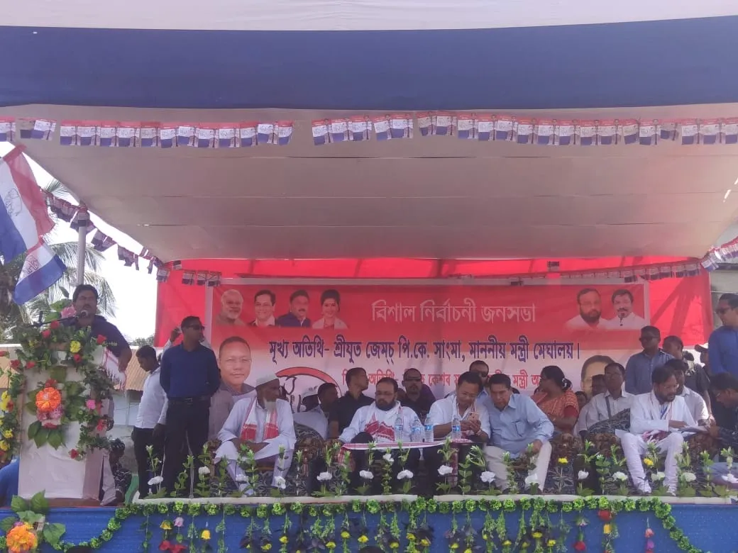 কেবা সহস্ৰাধিক লোকৰ উপস্থিতিত এই বিশাল নিৰ্বাচনী সভাখনত জাবেদ ইছলামৰ বিৰুদ্ধে আজমল বাহিৰা প্ৰাৰ্থী বুলি সমালোচনা কৰাৰ লগতে আজমলে মেট্ৰিক পাছ কৰা নাই বুলিও সমালোচনা কৰে কেশৱ মহন্তই। ইফালে মেঘালয়ৰ গৃহ মন্ত্ৰী জেমছত পি কে চাংমাই কয় যে, অসম-মেঘালয়ৰ মাজত এটা সু-সম্পৰ্ক আছে। অসমৰ ক্ষুদ্ৰ ব্যৱসায়ীয়ে মেঘালয়লৈ তেওঁলোকৰ উত্পাদিত সামগ্ৰী সমূহ ৰপ্তানি কৰে। আৰু মেঘলায়ৰ ৰাইজে উক্ত ক্ষুদ্ৰ ব্যৱসায়ীৰ পৰা কেচা সামগ্ৰী ক্ৰয় কৰে। দুয়োখন ৰাজ্যৰ ৰাইজ এনে কেচা সামগ্ৰীৰ দ্বাৰা উপকৃত হৈ আহিছে। কিন্তু দূৰ্ভাগ্যবশত মেঘালয়ত একাংশ গাৰো উগ্ৰপন্থীয়ে অসমৰ ব্যৱসায়ীক অপহৰণ কৰি অহাৰ ফলত অসমৰ ব্যৱসায়ী সকল মেঘালয়ত নিৰ্যাতিত হৈ আহিছে। এনে সকলো সমস্যা সমাধাণ কৰাৰ বাবে এন পি পি চৰকাৰে সকলো ব্যৱস্থা হাতত লব বুলি আশ্বাস দি মানকাচৰৰ ৰাইজৰ পৰা জাবেদ ইছলামৰ হৈ মিত্ৰজোঁট প্ৰাৰ্থী অগপক ভোট দিবলৈ আহ্বান জনায়।