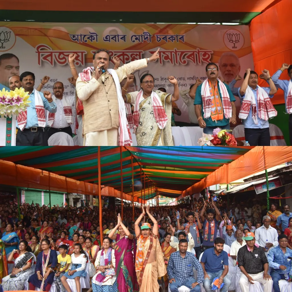 এপ্ৰিল মাহৰ পৰা অসমৰ সকলো বৃদ্ধই পাব বৃদ্ধ পেঞ্চন ৷ বিধবা মহিলায়ো একালীন অনুদান দিয়াৰ কথাও ব্যক্ত কৰে। মন্ত্ৰী ডঃ শৰ্মাই লগতে কয় যে-পূৰ্বৰ কংগ্ৰেছ চৰকাৰৰ দিনত মহিলা সকলৰ আত্মসহায়ক গোটক পাঁচ বছৰত পাঁচ হাজাৰ টকা দিয়ে। অৰ্থ্যৎ মাহে ১২ টকা দিয়ে। কিন্তু তৰুণ গগৈয়ে কয় অসমৰ মহিলা হেমামালিনী হব লাগে। কিন্তু ১২ টকাত কেনেকৈ হেমামালিনী হব। প্ৰতিটো কথাতে বাদ দিয়ক বুলি কোৱা আমি তৰুণ গগৈ আৰু কংগ্ৰেছকে বাদ দি উন্নয়ণৰ কাম কৰি গৈছো। সভাৰ শেষত মঞ্চতেই হিমন্তৰ জঁপিয়াই জপিয়াই নৃত্য পৰিবেশন কৰাৰ লগতে সভাত উপস্থিত থকা হাজাৰ ভোটাৰেও হিমন্তৰ সমান্তৰালকৈ নৃত্য পৰিবেশন কৰে।