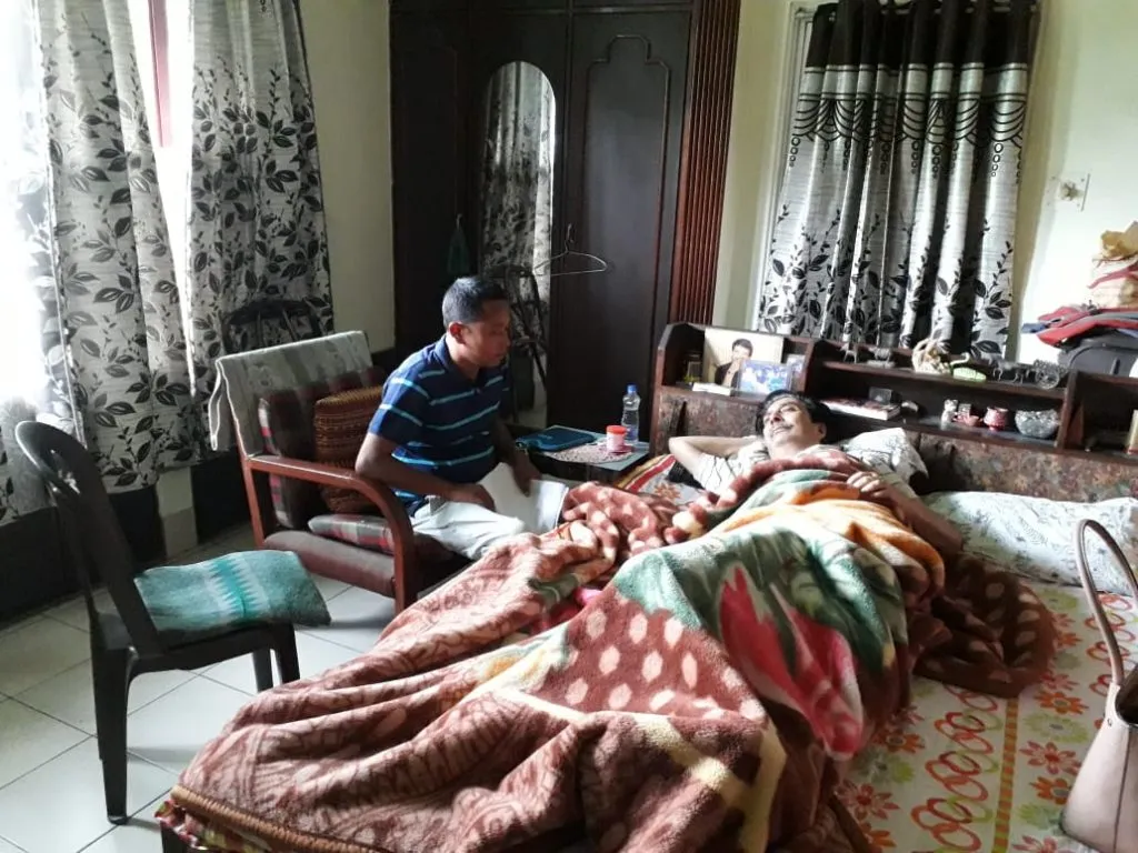 অত্যন্ত মনোকষ্টত আছে তেখেত। বুজি পালো তেখেতে কিছু কথা ক'ব খোজে। তাৰ পাছত আমি তেখেতৰ সৈতে কথা পতাৰ যত্ন কৰিলো। কথা পাতি থাকিলে তেখেত যে অসুস্থ সেয়া অনুমানে নহয়। তেতিয়া সেই কোঠাটোত আছিল তেওঁৰ অসুস্থতাৰ খবৰ পাই মুম্বাইৰ পৰা দৌৰি অহা বোৱাৰী কিংকিনী।