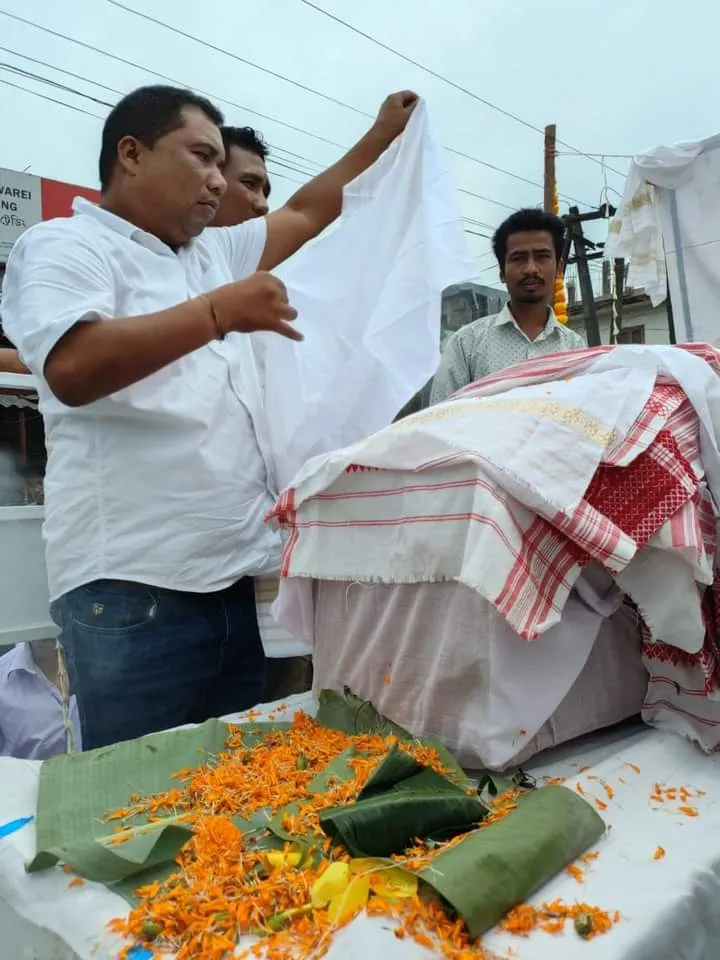 অলেখ গুণমুগ্ধই ভীৰ কৰে মৰাণৰ বাসগৃহ । আজি পুৱা বিদ্ৰোহী নেতাগৰাকীয়ে মৃতদেহ ৰূপাইৰ পৰা এক বৃহৎ সমদলৰ জৰিয়তে জন্মস্থান উবন গাঁৱলৈ নিয়াৰ পথত বিভিন্ন দল-সংগঠন আৰু ব্যক্তিবিশেষে তেখেতলৈ অন্তিম শ্ৰদ্ধাঞ্জলি জ্ঞাপন কৰে ৷ কাকপথাৰতো মৰাণ ছাত্ৰ সন্থা, মৰাণ মহিলা পৰিষদ, অসম মৰাণ সভা, আছু, যুৱ-ছাত্ৰ পৰিষদ, মটক যুৱ-ছাত্ৰ সন্মিলন আদি কৰি ভালেসংখ্যক দল-সংগঠনে আলফা নেতাগৰাকীলৈ অন্তিম অঞ্জলি নিবেদন কৰে ৷