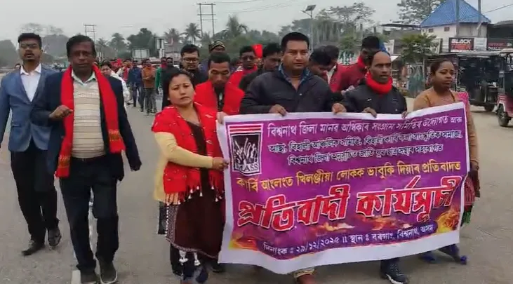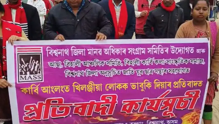 ডিজিটেল ডেস্কঃ বিশ্বনাথ জিলা মানৱ অধিকাৰ সংগ্ৰাম সমিতিৰ উদ্যোগত,আছা বিহালী আঞ্চলিক সমিতি, বিহালী কাৰ্বিকলা সাংস্কৃতিক সমাজ আৰু বিশ্বনাথ জিলা অনুসূচিত জাতি যুৱ ছাত্ৰ সন্থাৰ সহযোগত কাৰ্বি আলংত খিলঞ্জীয়া লোকক ভাবুকি দিয়াৰ প্ৰতিবাদত বৰগাংত প্ৰতিবাদী কাৰ্যসূচী ৰূপায়ণ। অসমীয়া কাৰ্বি সকলৰ ওপৰত কৰা অত্যাচাৰ কোনো পধ্যেই মানি লোৱা নহ'ব বুলি উল্লেখ কৰে।
