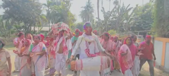 অবিৰৰ ৰঙেৰে ৰঙীণ হৈ পৰিল গাঁওখনৰ ৰাইজ তথা পুৰুষ মহিলা যুৱক-যুৱতীসকল। এই ফাকুৱা উপলক্ষে ধৰ্মীয় পৰম্পৰা অনুযায়ী গোঁসাই ফুৰোৱা হয় ৷ এই পৰম্পৰাৰে ভকত -বৈষ্ণৱ সকলে গোঁসাইক কান্ধত তুলি নি প্ৰতিখন গৃহস্তৰ পদূলি মুখ পোৱাৰ মাত্ৰকে গৃহস্থই শৰাই আগবঢ়াই আশীৰ্বাদ নিৰ্মালী গ্ৰহণ কৰে আৰু শিৰত ফাকুগুৰি সানি আশীৰ্বাদ প্ৰদান কৰে।এই গোসাঁই ফুৰোৱাৰ মাজতে গাওঁখনৰ ৰাইজে ইজনে সিজনক অবিৰৰ ৰং সানি আনন্দত আত্মহাৰা হৈ পৰা পৰিলক্ষিত হয় ৷
