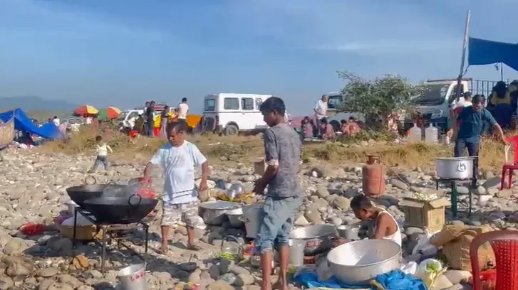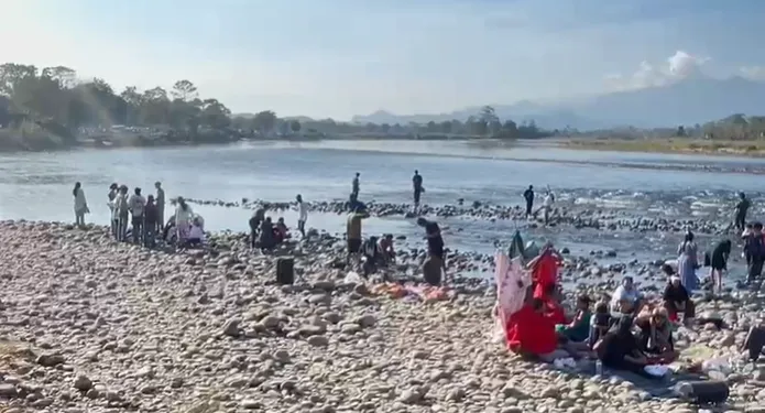 নদীৰ দাঁতিত উদুলি- মুদুলি পৰিৱেশ। SOP মানি হলেও ৰাজ্যৰ ভিন্ন প্ৰান্তৰ পৰা এইবাৰো ঢপলিয়াই আহিছে বনভোজপ্ৰেমী দল সমূহ ৷ পৰিয়াল¸বন্ধু¸আপোনজনৰ সৈতে এসাঁজ একেলগে খাবলৈ নদীৰ এতিয়া ভিৰ হৈছে বনভোজৰ দলসমূহে ।