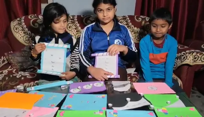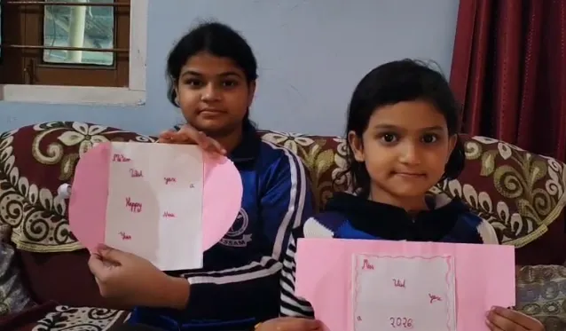 পিচে এই কাৰ্ড প্ৰচলন নোহোৱা হ'ল।কালৰ গ্ৰাসত হেৰাই যোৱা গ্ৰিটিংছ কাৰ্ড ধৰি ৰখাৰ প্ৰয়াস চামগুৰিৰ দুগৰাকী কণমানিৰ।চামগুৰিৰ শিঙিয়া কেকোঁৰা চুক গাঁৱৰ উৎপলাক্ষী বৰা আৰু থানভি বৰাই নিজৰ বন্ধু-বান্ধবী সকলৰ লগতে নিজৰ বিদ্যালয়ৰ শিক্ষক শিক্ষয়িত্ৰী সকলক নৱবৰ্ষৰ শুভেচ্ছা জনাবলৈ ঘৰতে বনাইছে নানাৰঙী গ্ৰিটিংছ কাৰ্ড। ৰঙীন কাগজ ব্যৱহাৰ কৰি বিভিন্ন ধৰণৰ ডিজাইনেৰে বনাইছে গ্ৰিটিংছ কাৰ্ড সমূহ। সচাঁকৈযে উঠি অহা প্ৰজন্মটোৰ এনে আগ্ৰহ দেখি পুৰণি দিনবো ঘুৰি অহাৰ দৰে লাগে।