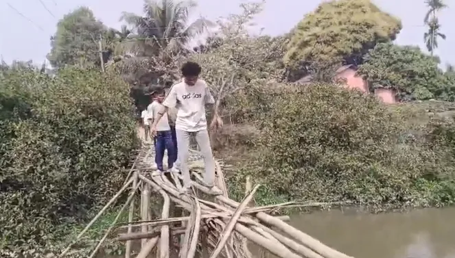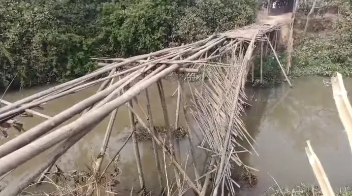 ডিজিটেল ডেস্কঃ উন্নয়নকামী চৰকাৰৰ উন্নয়নৰ ফোপোলা স্বৰূপ দেখিলে তবধ মানিব আপুনিও। কিয়নো দশক দশক ধৰি উন্নয়নৰ নামত কেৱল উন্নয়নৰ ফোপোলা স্বৰূপ দেখিবলৈ পাইছে পৰ্বতঝোৰাৰ বৰভিটা গাঁৱৰ ৰাইজে। গাঁওখনত যাতায়তৰ বাবে পথ আছে যদিও পথ নে পথাৰ ধৰিবই নোৱাৰি। সৰু এটা সুঁতিৰ ওপৰত এখন বাঁহৰ দলং জৰাজীৰ্ণহৈ ভাঙি যোৱাত বিপদসংকুল ভাবে সেই দলং পাৰাপাৰ কৰিবলগীয়া হৈছে গাঁওবাসীৰ লগতে স্কুল কলেজৰ ছাত্ৰ-ছাত্ৰীসকলে। একাংশ ছাত্ৰ-ছাত্ৰীয়ে এইখন জৰাজীৰ্ণ বাঁহৰ দলংৰে পাৰাপাৰ হ'ব নোৱাৰাত প্ৰায় ২কিলোমিটাৰ খেতি পথাৰৰ আলিৰে বোকা পানী গচকী বিদ্যালয়লৈ যাব লগা হৈছে।
