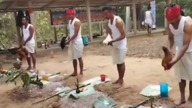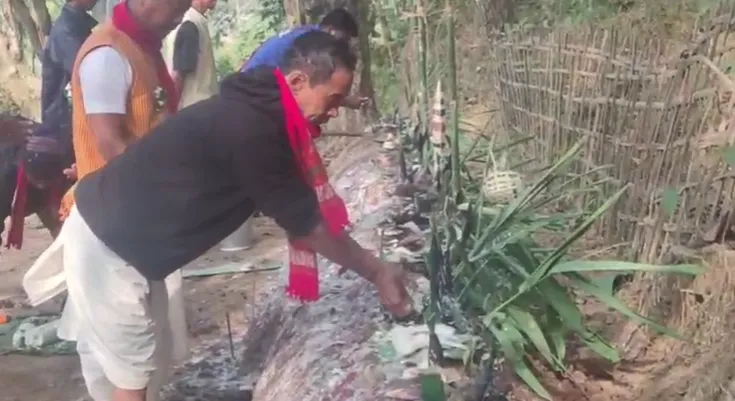 ইপিনে কুকুৰা, ছাগলী, গাহৰি আদি বলি দি দ'ৱানত পূজা অৰ্চনা কৰে। তাৰ পাছতে পূজাত বলি দিয়া কুকুৰা, ছাগলী, গাহৰি আদিৰে ভোজ-ভাত বনাই সকলোয়ে একেলগে এসাঁজ খায়।