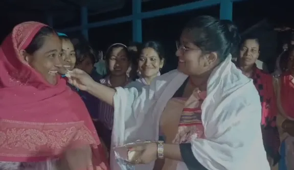 মুখ্যমন্ত্ৰী হিমন্ত বিশ্ব শৰ্মা জিন্দাবাদ, জনগোষ্ঠী ভেলী স্বাগতম শ্ল'গানেৰে মুখৰিত চিচিবৰগাওঁ। ইপিনে মিঠাই বিতৰণ কৰি বিহু গীতত নৃত্য কৰে গাঁৱৰ ৰাইজে।