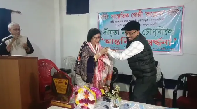 ইতিমধ্যে বৃটিছ নাগৰিকত্বও লাভ কৰিছে তেওঁ ৷ বৃহস্পতিবাৰে এই গৰাকী মঞ্জিৰা চৌধুৰীক বিশেষ ভাৱে সম্বৰ্দ্ধনা জ্ঞাপন কৰে নগাঁৱৰ অন্যতম সাংস্কৃতিক গোষ্ঠী কল্লোলে৷ কল্লোলৰ জন্মলগ্নৰে পৰা জড়িত মঞ্জিৰা চৌধুৰীক সম্বৰ্দ্ধনা জনাই আপ্লুত কল্লোল গোষ্ঠী ৷