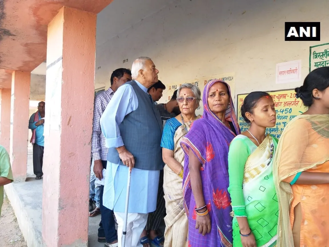 ২. প্ৰাক্তন কেন্দ্ৰীয় মন্ত্ৰী যশৱন্ত সিনহাই হাজৰিবাঘৰ এটা ভোটকেন্দ্ৰত পত্নীৰ সৈতে সাব্যস্ত কৰিলে ভোটাধিকাৰ।