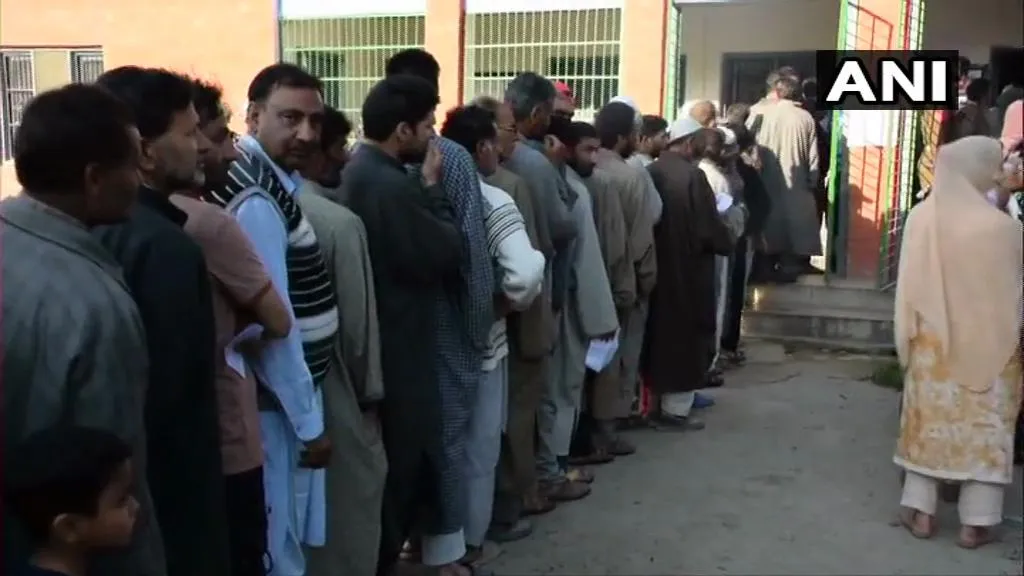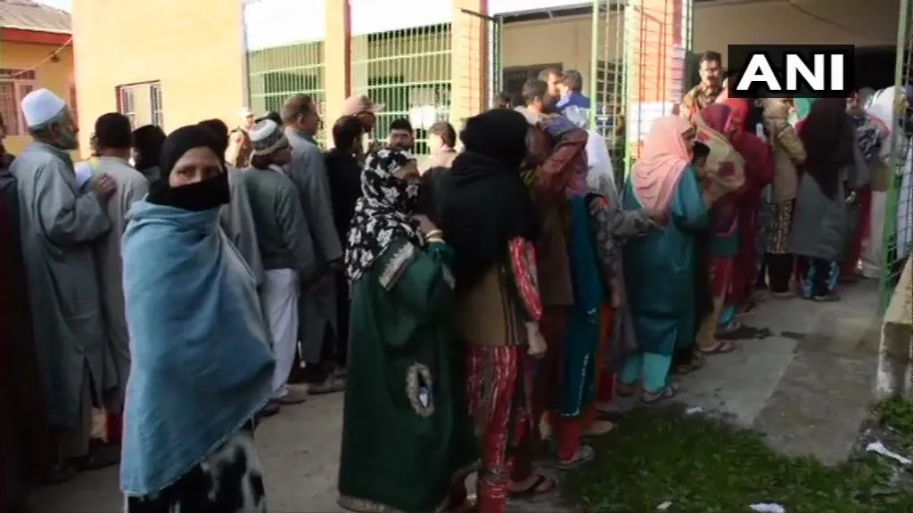 ৮. জম্মু-কাশ্মীৰৰ পুলৱামাটো পুৱাৰে পৰা ভোটগ্ৰহণ কেন্দ্ৰত ৰাইজৰ দীঘলীয়া লানি।