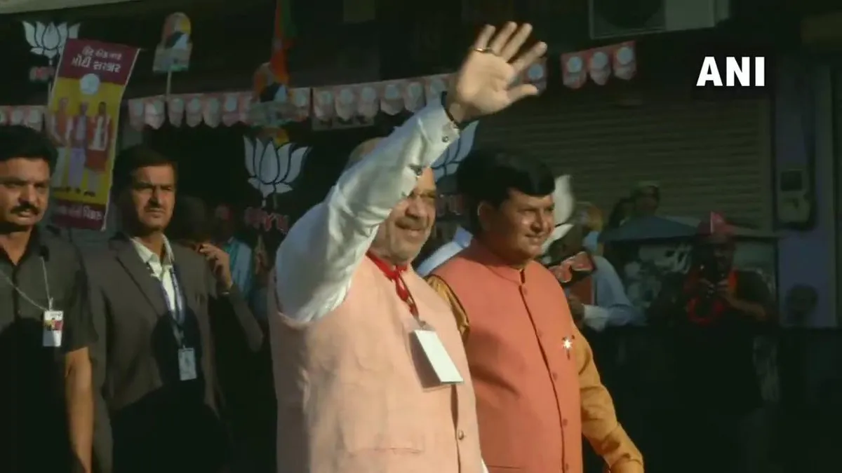 - গুজৰাটৰ গান্ধীনগৰত উপস্থিত বিজেপি সভাপতি তথা দলটোৰ প্ৰাৰ্থী অমিত শ্বাহ।