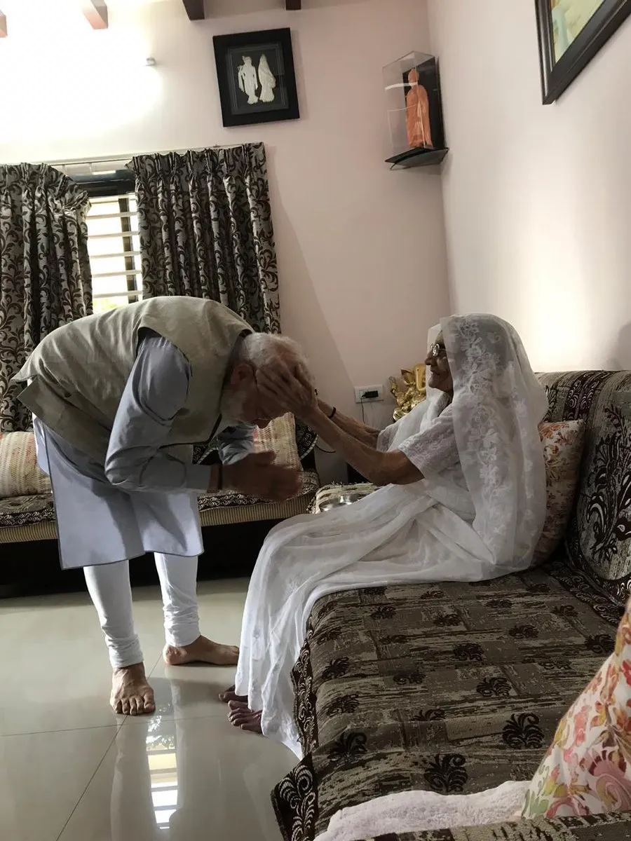 - ভোটদানৰ পূৰ্বে প্ৰধানমন্ত্ৰী মোডী উপস্থিত মাতৃৰ বাসগৃহত।